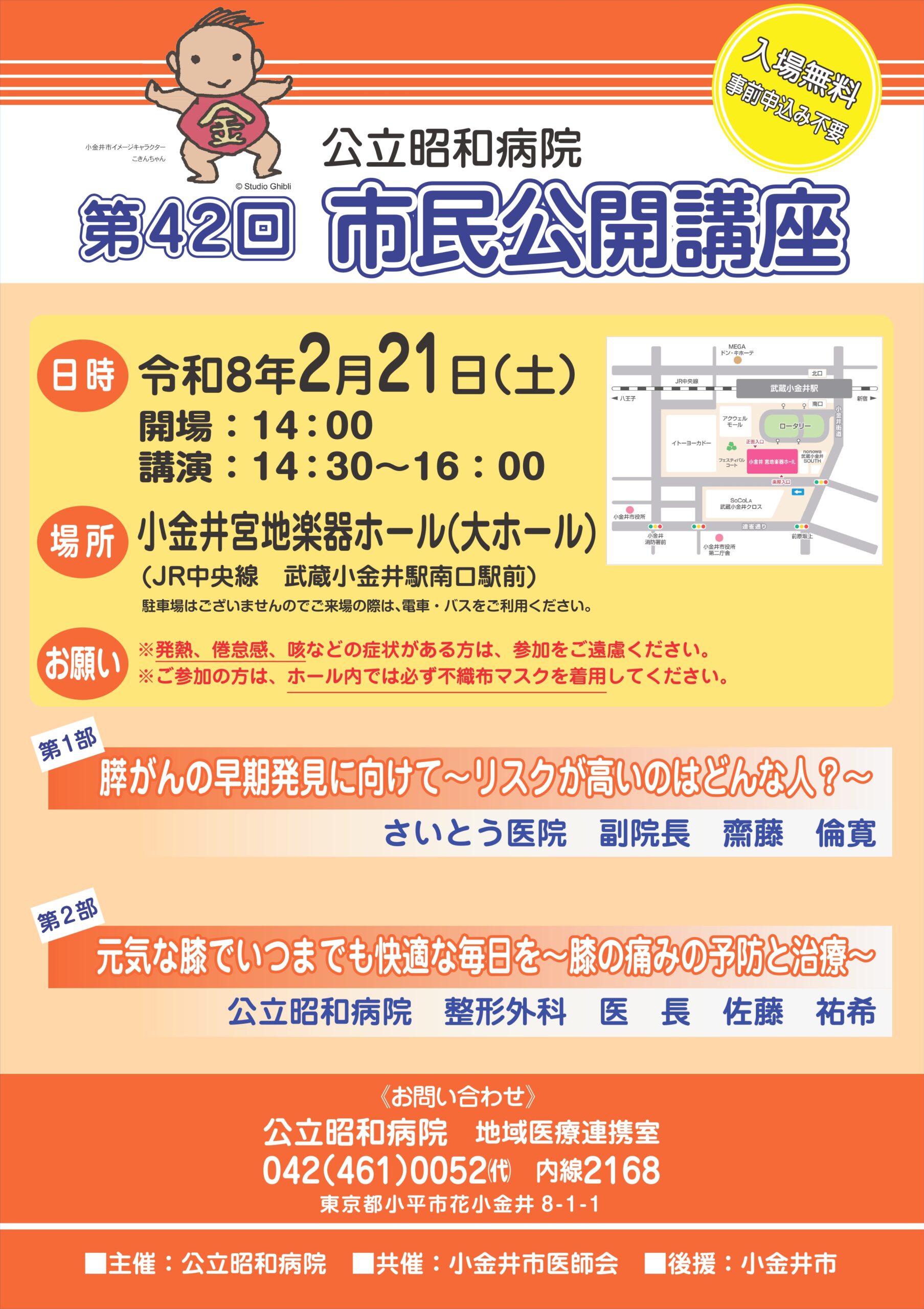 公立昭和病院では、令和8年2月21日(土)に市民公開講座を開催いたします。